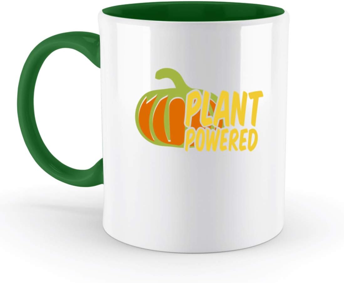 SPIRITSHIRTSHOP Plant Powered – Taza bicolor (base plana, veganos, vegetarianos, verduras, frutas, alimentación vegetal), Cerámica, Irish Green, 33 0ml